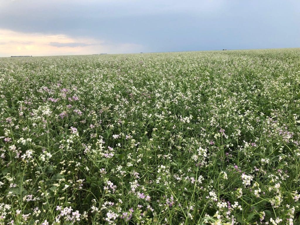 Imagem: nabo forrageiro (Raphanus sativus L.) em área de pousio em Chapadão do Sul – MS. Foto: João Paulo Marim Sebim.