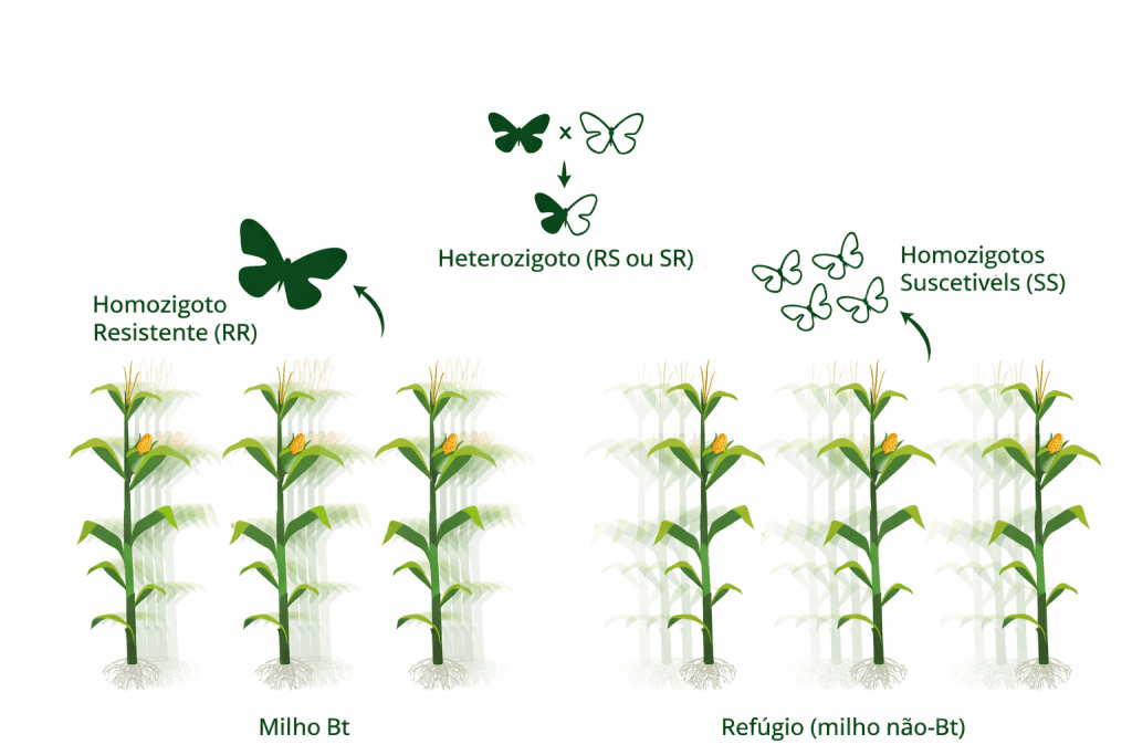 Ao manter uma área sem a tecnologia Bt ou sem determinado mecanismo de ação, preserva-se uma população de indivíduos suscetíveis. Esses indivíduos cruzam com eventuais resistentes, diluindo a frequência do gene associado à resistência.